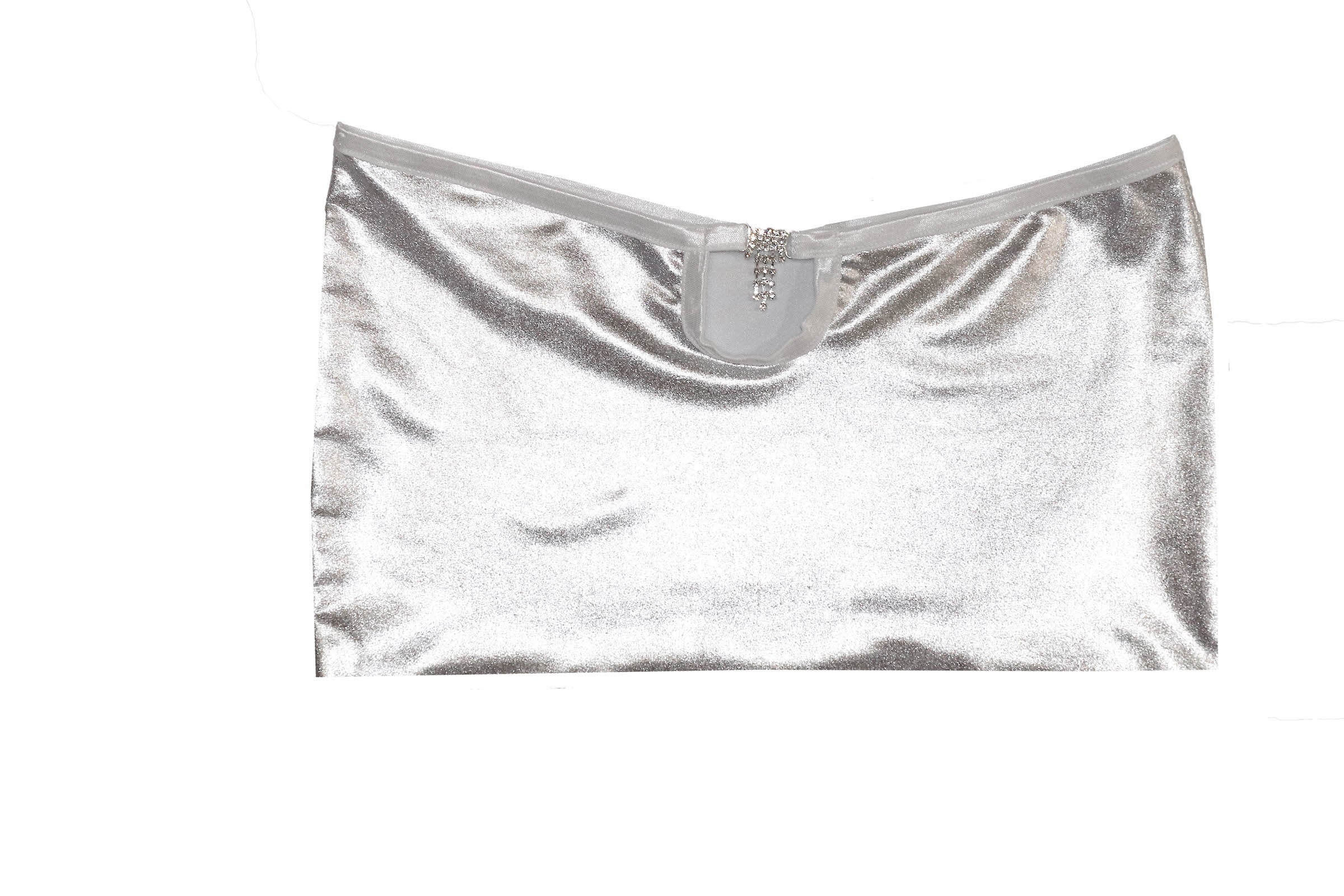 This 3 piece bikini set is made out of a metallic spandex fabric. It includes BRA, THONG, & SKIRT.
