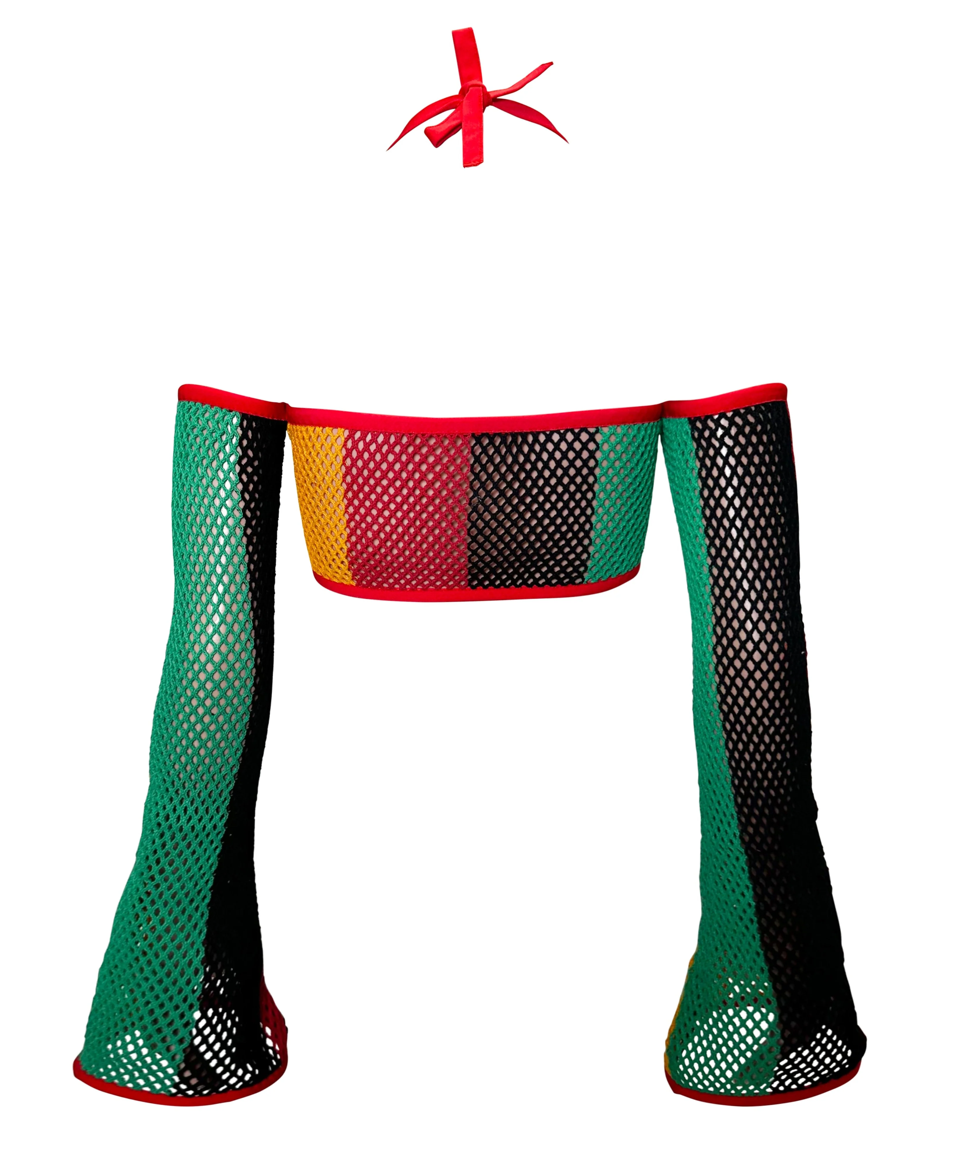 This reworked mesh rasta top, is lined only in the front with black spandex fabric. Wear it with the JAMROCK matching skirt for the cutest summer look! (◕‿◕)♡
