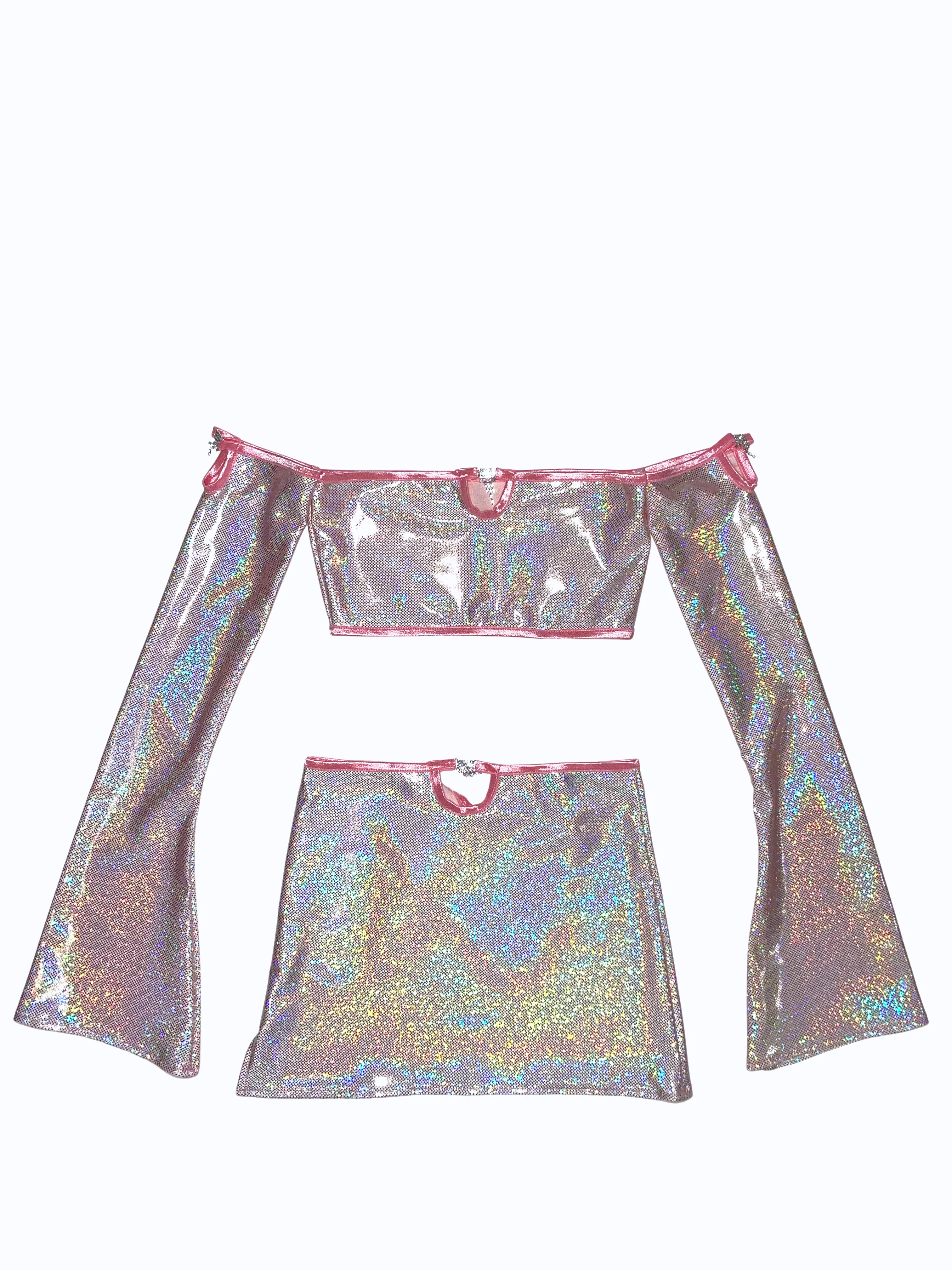 This set is made out of a HOLOGRAPHIC stretchy fabric.