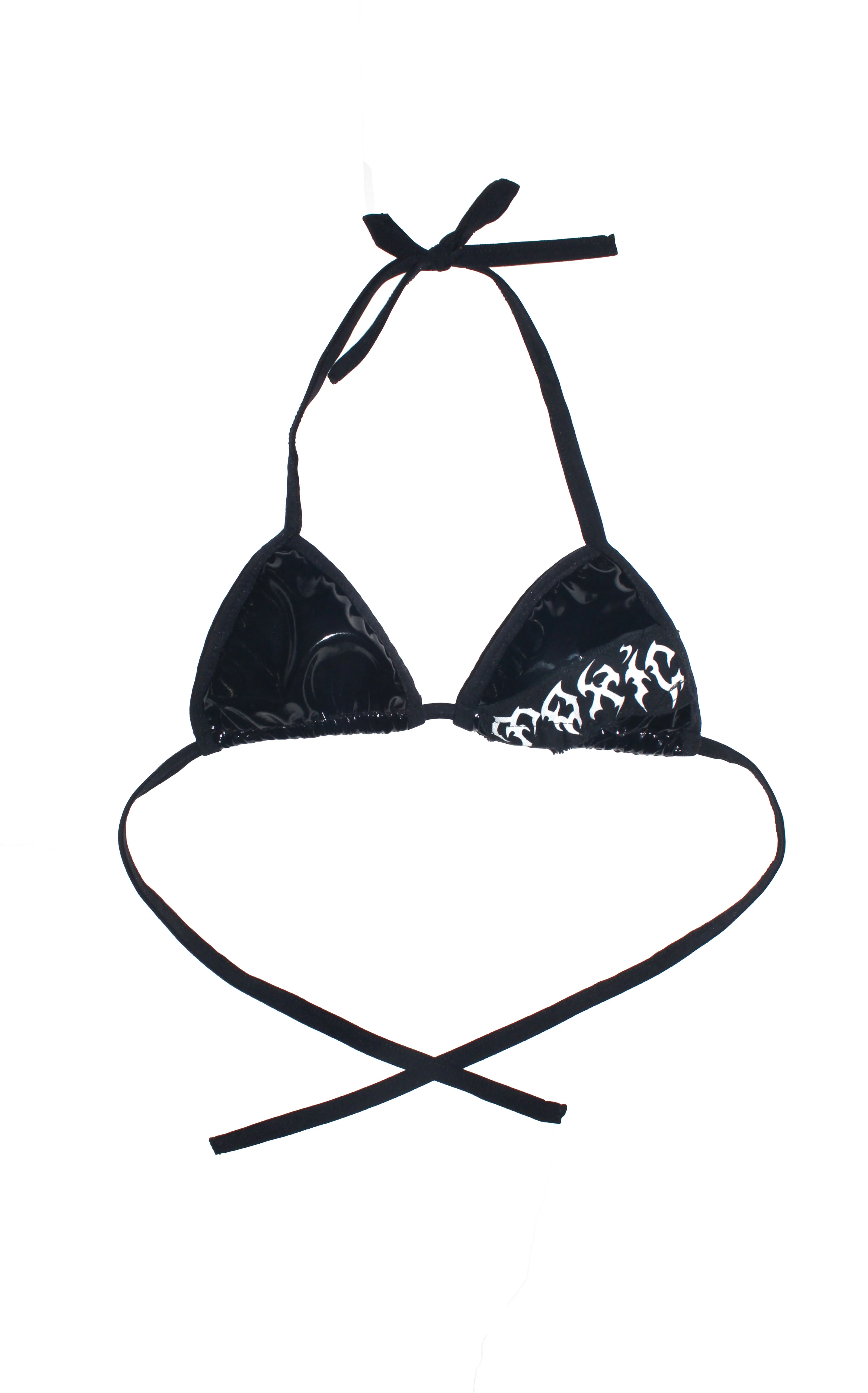 *This bra and skirt set is made out of stretchy vinyl fabric.Skirt has adjustable side strings